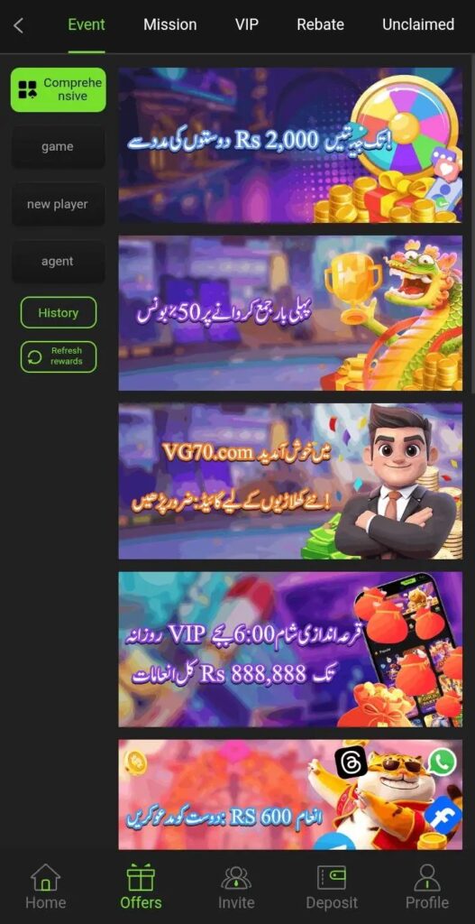 New users receive a sign-up bonus, which allows them to play without a large initial deposit. This is ideal for first-time users exploring mobile gaming Pakistan.